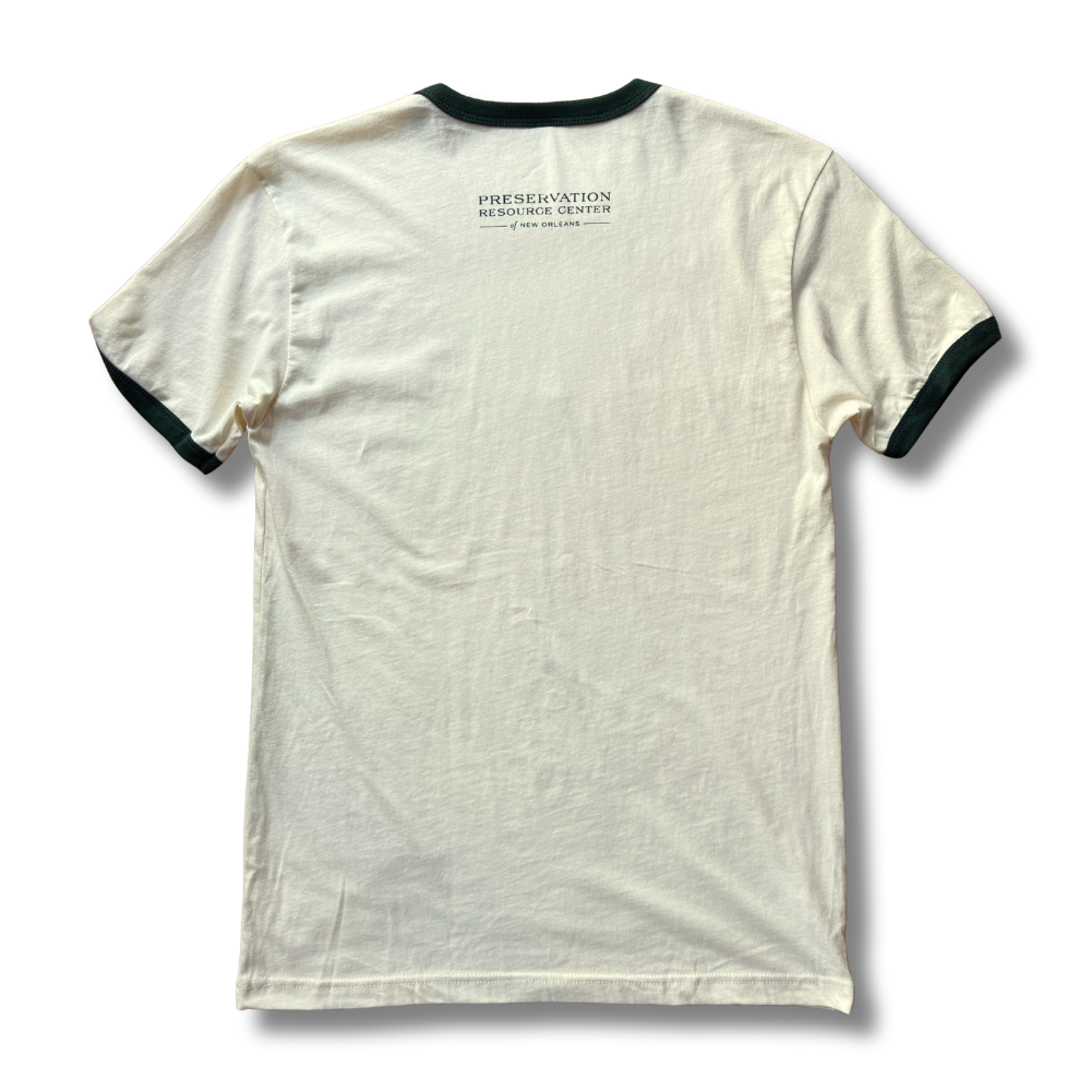 Printed on a Next Level Apparel 100% cotton ringer tee, this shirt is soft, breathable, and effortlessly cool, with a cream body and dark green trim for that just-right vintage vibe. It’s the perfect pick for anyone who knows that when it comes to New Orleans architecture (and love for this city), more is more.