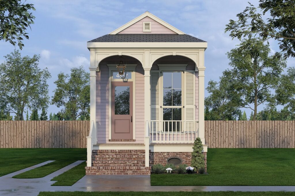 Since that meeting, owner Michael Moore of Moore Property Ventures LLC appears to have shown more respect for the regulatory process, presenting an appropriately sized, two-bay single shotgun to the Architectural Review Committee. At that meeting, ARC made several recommendations including simplifying the overall design, replacing the paneled arch columns with brackets, adjusting the door and window on the front facade to be at porch level, and maintaining a consistent lintel line for fenestration on the front and side elevations.