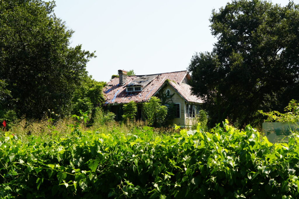 In 1932, Dr. Alfred King acquired an expansive parcel near the Algiers Naval Station, where he and his wife built an idiosyncratic interpretation of a Colonial Revival-style raised cottage. Dr. King died in 1933, and his widow lived on the property until 1951, cultivating celebrated gardens. From 1952 until 1970, Dr. King’s nephew, Vernon Lee Davis, and his wife, both horticulturists, maintained this country home in the city. Today, the abandoned cottage is perilously dilapidated, obscured by vegetation. Although a developer acquired 2020 Farragut and the grounds of the demolished 2030 Farragut in 2017, neglect continues.
