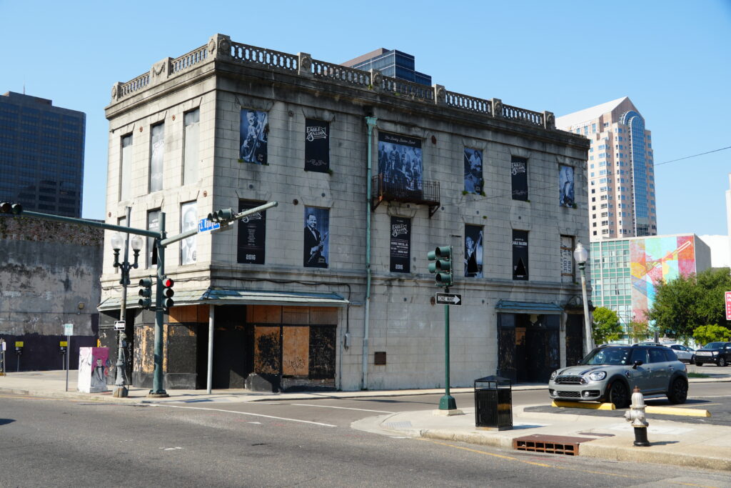 Built in 1850, the Eagle Saloon stands as a nationally significant early jazz landmark — one of the last survivors of “Black Storyville” along South Rampart Street. This sacred ground witnessed the musical genesis of legends like Buddy Bolden and Joe “King” Oliver, while serving the diverse “Back of Town” neighborhood that shaped Louis Armstrong’s youth. Despite its 2002 National Register designation, the Eagle Saloon remains shamefully neglected: vacant, deteriorating and forgotten. Redevelopment of other buildings in this jazz corridor are complete or underway. The Eagle Saloon must be prioritized for renovation.