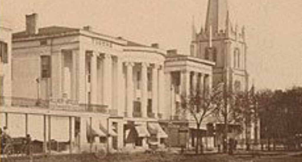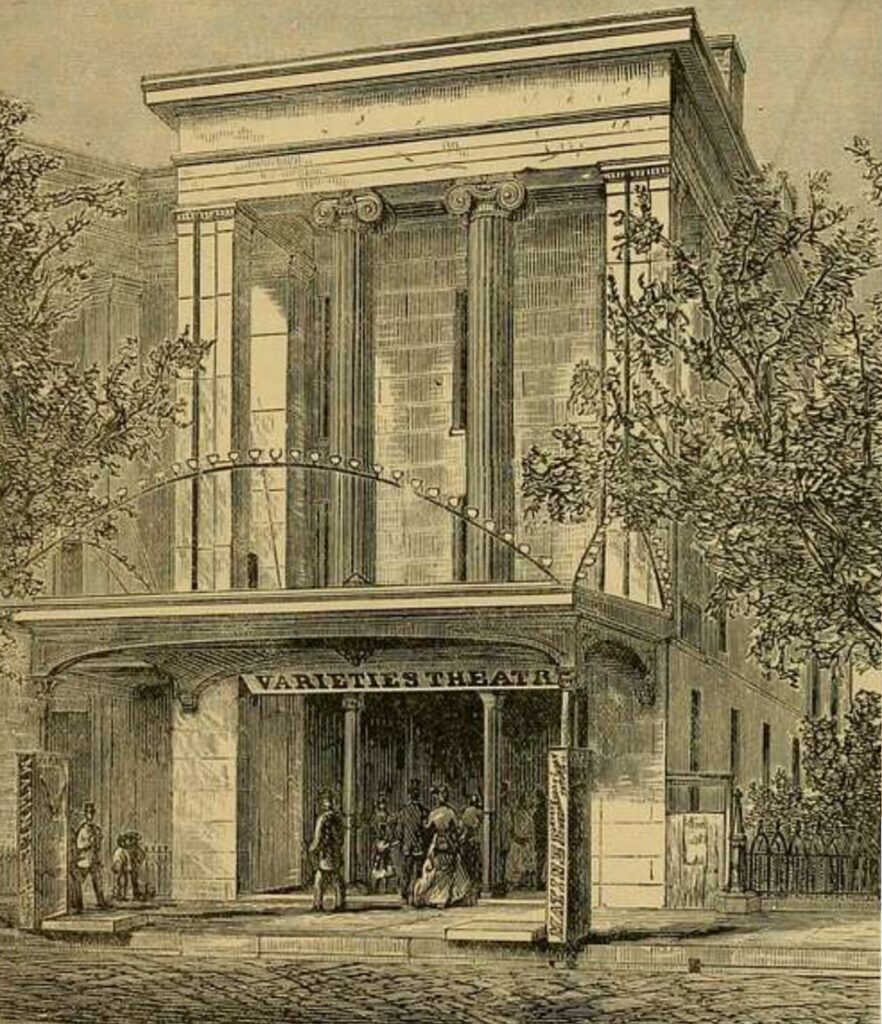Last unit of Union Terrace as the Varieties Theater. (Image from Jewell’s Crescent City Illustrated.)