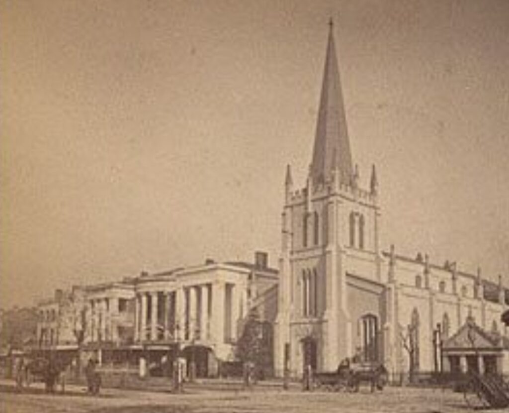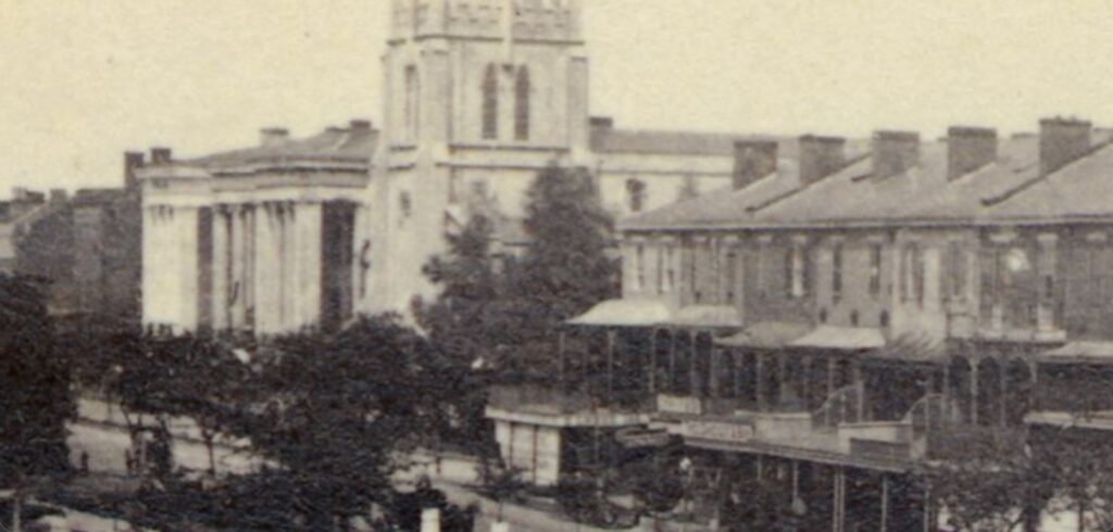 Unfortunately, Richard O. Pritchard barely got to enjoy his new home, having died unexpectedly in 1839. Families of his co-investors, including the powerful Bringier, Gasquet, and Field families, became Union Terrace’s early occupants. In 1847, they got a new neighbor, the Christ Episcopal Church, designed by James Gallier Sr. The house of worship, whose congregants included members of the Anglo elite, added to this area’s cultural and economic stature, and Canal between Dauphine and Burgundy became one of the most beautiful — and Classical — streetscapes in town.